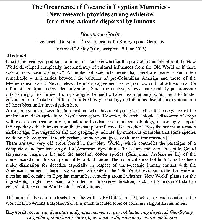 Görlitz, D. (2016). [Research on cocaine in Egyptian mummies - full citation needed]