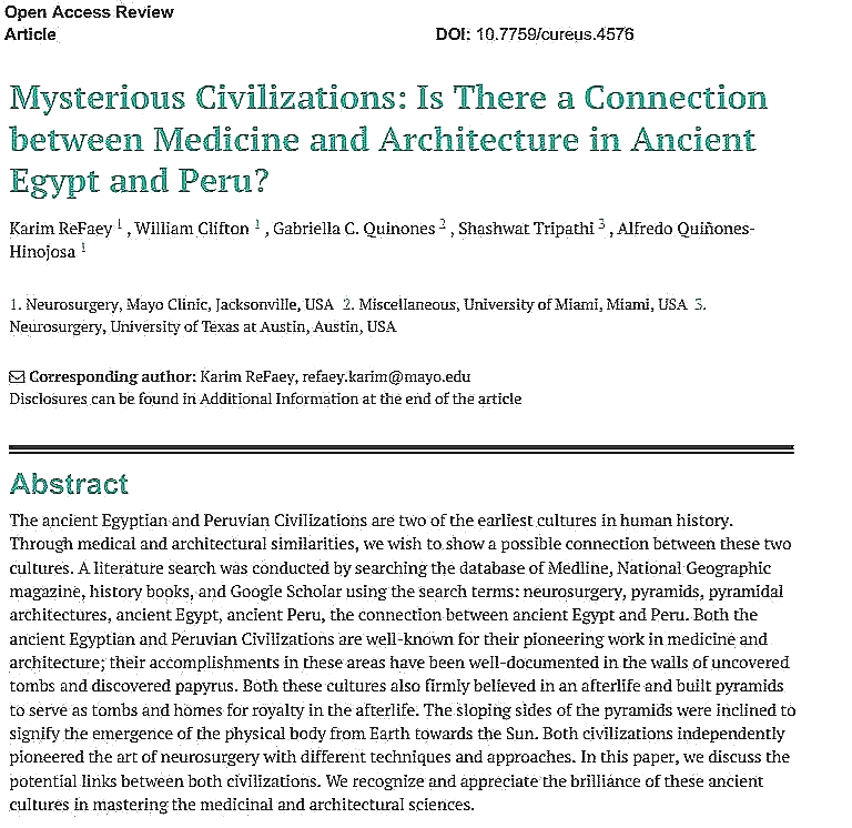 2019: Comparative analysis of Egyptian and Peruvian trepanation techniques (Refaey et al.)